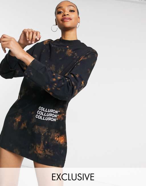 Collusion Tie Dye Long Sleeve T Shirt Dress Bolivia Embajadashops